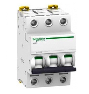 Автоматический выключатель iC60N. Возможность секционирования в промышленных электроустановках. Индикация аварийного отключения посредством красного механического индикатора состояния, расположенного на передней панели автоматического выключателя. Фиксация двойным пружинным зажимом позволяет демонтировать устройство, не снимая гребёнчатую шинку.