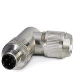 Штекерные соединители для передачи данных, Ethernet CAT5 (100 Мбит/с), 4-полюсн., экранирован., Штекеры угловой M12, Кодирование: D, Клеммы с ножевыми контактами, материал накатанной гайки: латунь, никелированный, наружный диаметр кабеля 4 мм ... 8 мм