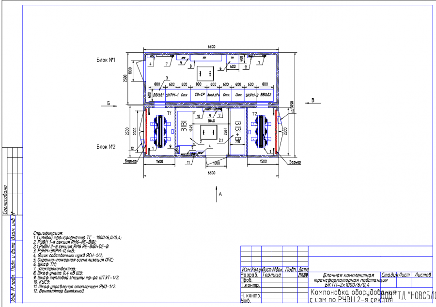 2БКТПх1000 кВА (АП)