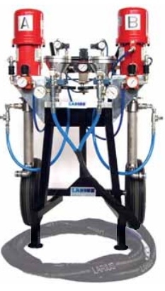 Насос состоит из 2 насосов нержавейка Ghibli 10: 1. Подходит для продуктов 2K с соотношением компонентов 1: 1. Оснащен пневматическими регуляторами.
