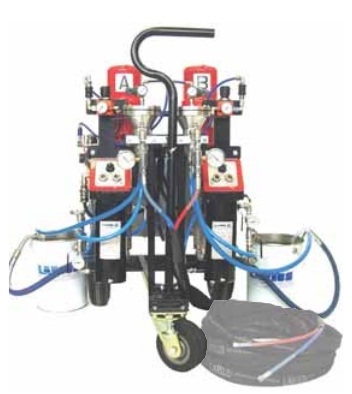 Насос состоит из 2 насосов из нержавейки Ghibli 10: 1. Подходит для продуктов 2K с соотношением компонентов 1: 1. Оснащен пневматическими регуляторами + нагревателями.